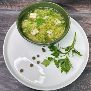 Домашняя лапша на курином бульоне