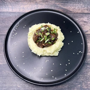 Маринованные в соевом соусе и обжаренные подаём с картофельным пюре